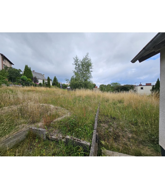 Działka budowlana z domem do rozbiórki, w pełni uzbrojona: gaz, woda, kanalizacja, internet, TV, dodatkowo posiada przyłącze Miejskiego Przedsiębiorstwa Ciepłowniczo-Komunalnego „Koksik”, otoczona z każdej strony innymi domami, w enklawie ciszy i spokoju. Usytuowana poza ścisłym centrum miejscowości, ale bardzo blisko komunikacji, szkoły, sklepów, co jest jej bardzo dużym atutem.